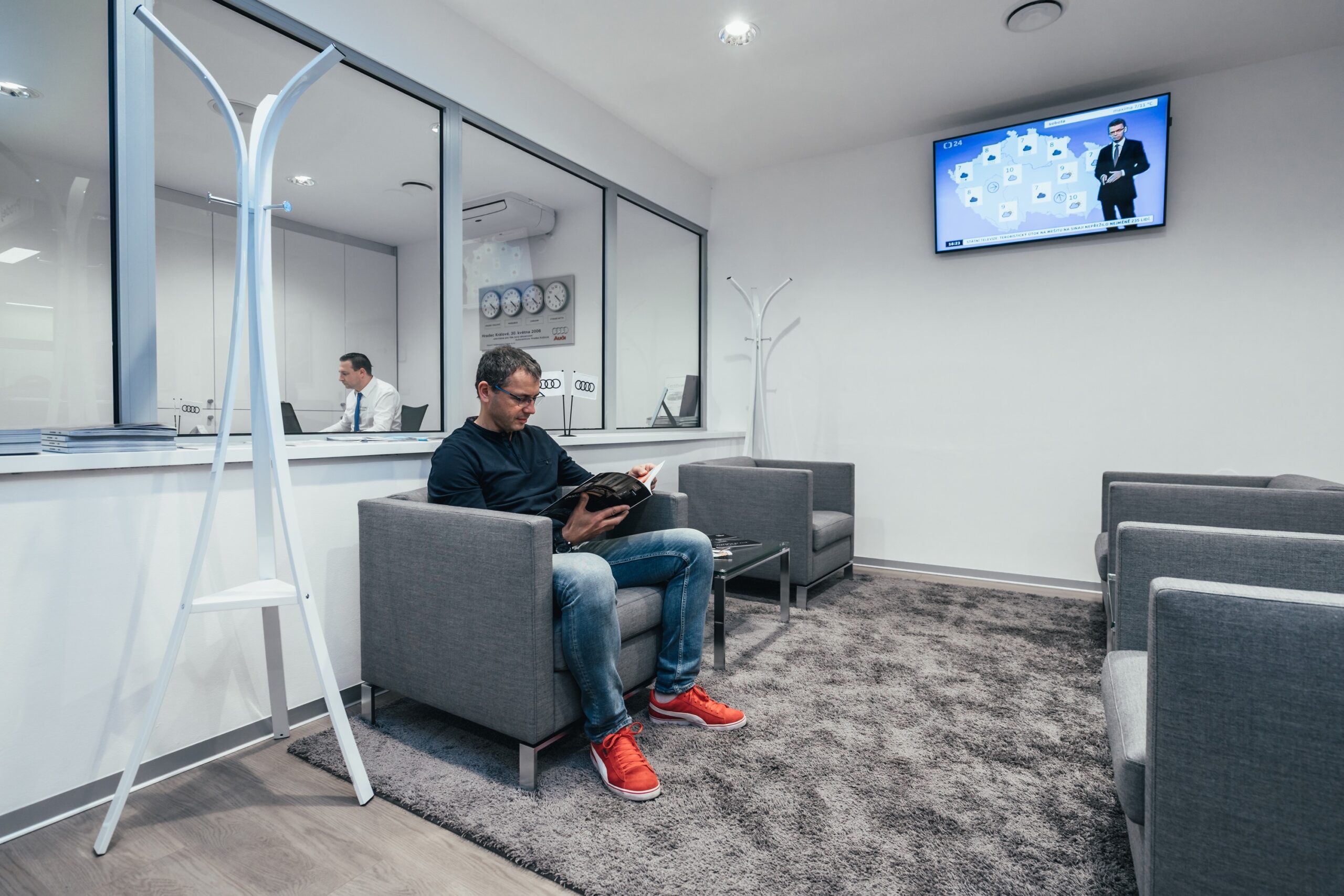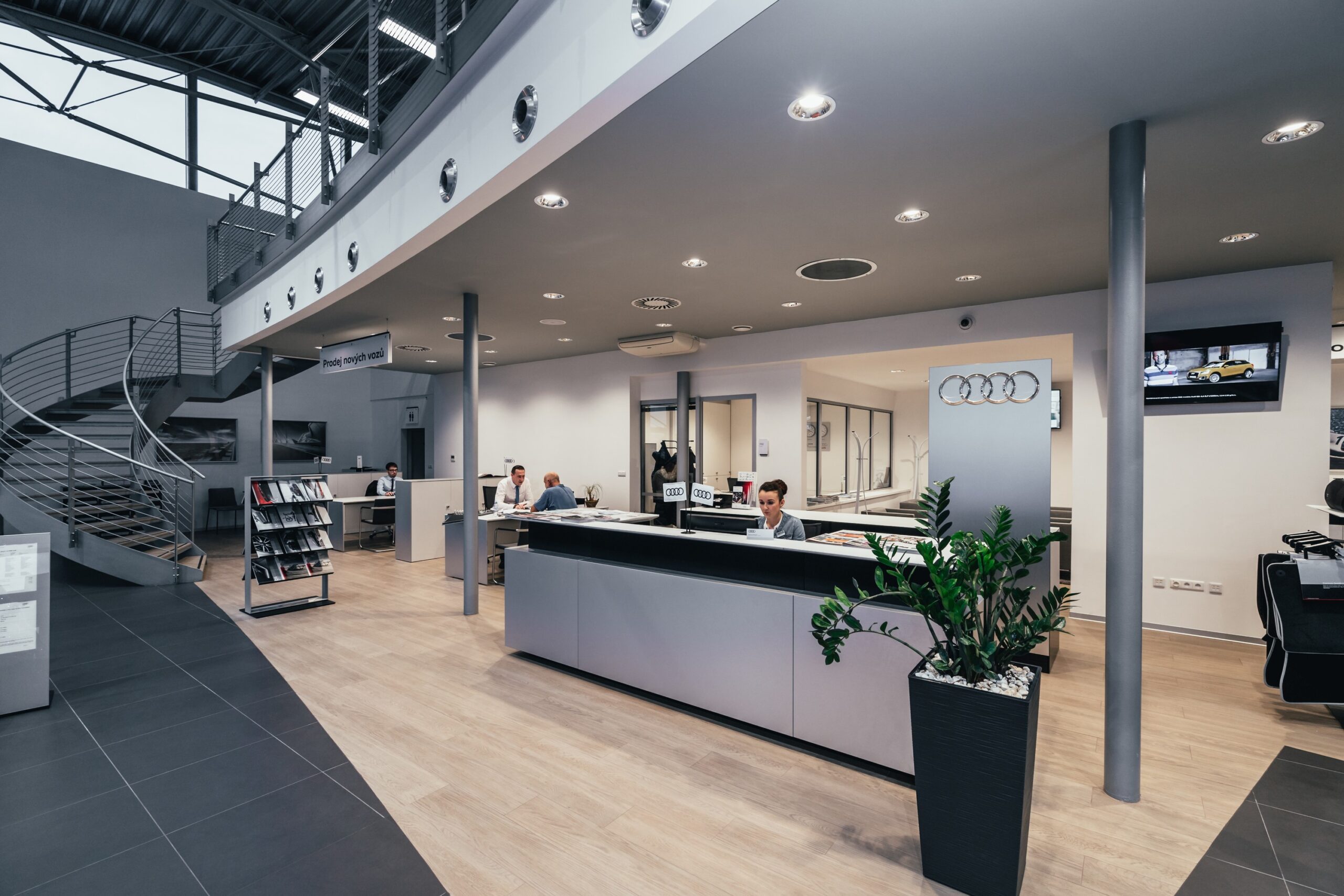 Interiér stávající budovy Audi jsme modernizovali v novém firemním designu značky Audi.