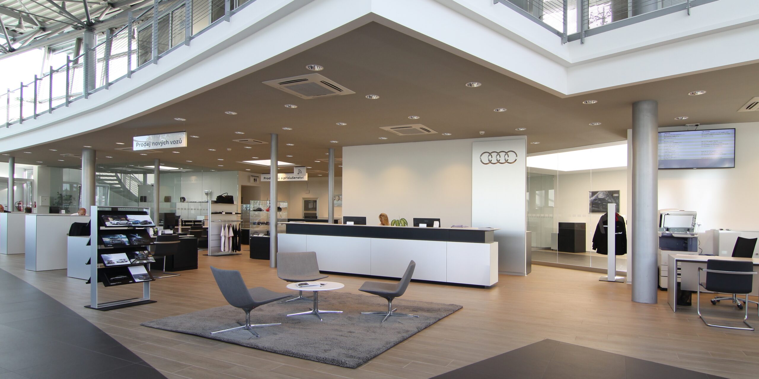 Design automobilů se vyvíjí a s ním také představa o jejich výstavních prostorech. Autosalon Audi, který jsme pro Auto Jarov zpracovávali v roce 2004, jsme nyní modernizovali v novém firemním designu Audi.