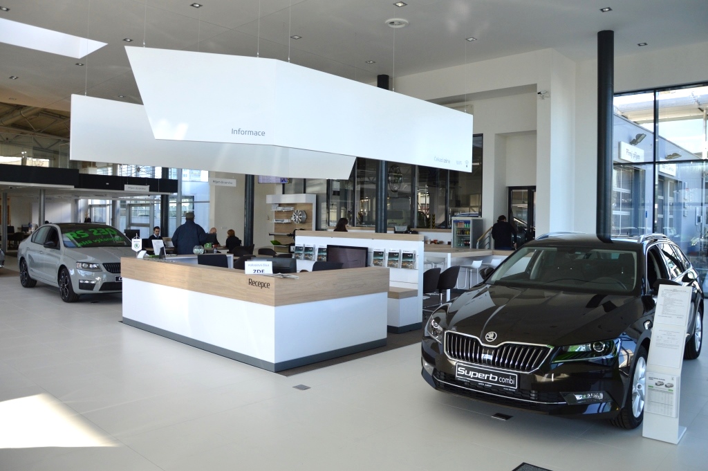 Facelift autosalonů VW z konceptu Piazza na modulární koncept (Porsche Č. Budějovice, Porsche Prosek, Porsche Brno, Porsche Plzeň, Porsche Ostrava, Amond Kladno, Araver Uherské Hradiště, Auto Jarov, Car Point Domažlice, VW Klokočka) – realizováno 2015