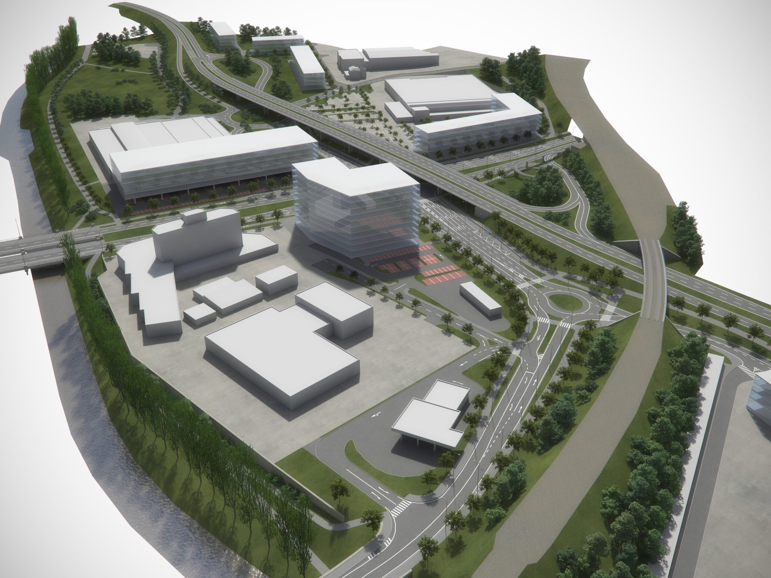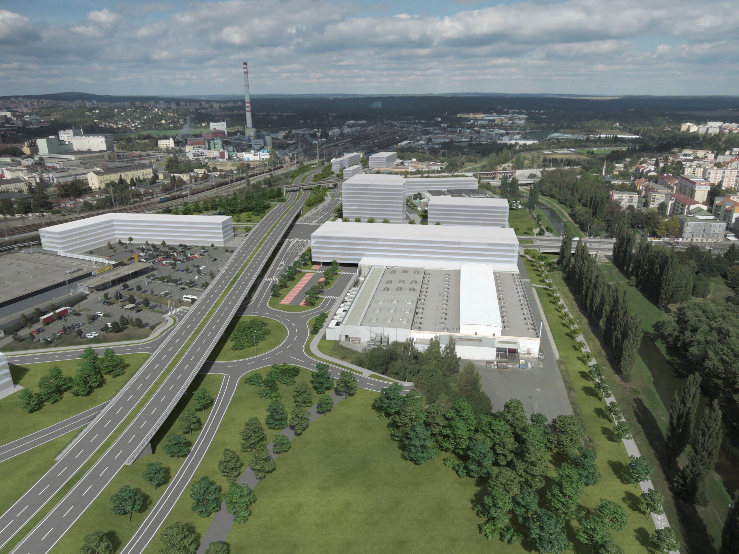 Studie komplikovaného území v Plzni, které navazuje na centrum města při výjezdu směrem na Prahu. Území zahrnuje rekreační zahrádky při řece Úslavě, železnici, průmyslové areály a nákupní centra, silniční síť a plánovaný silniční průtah.